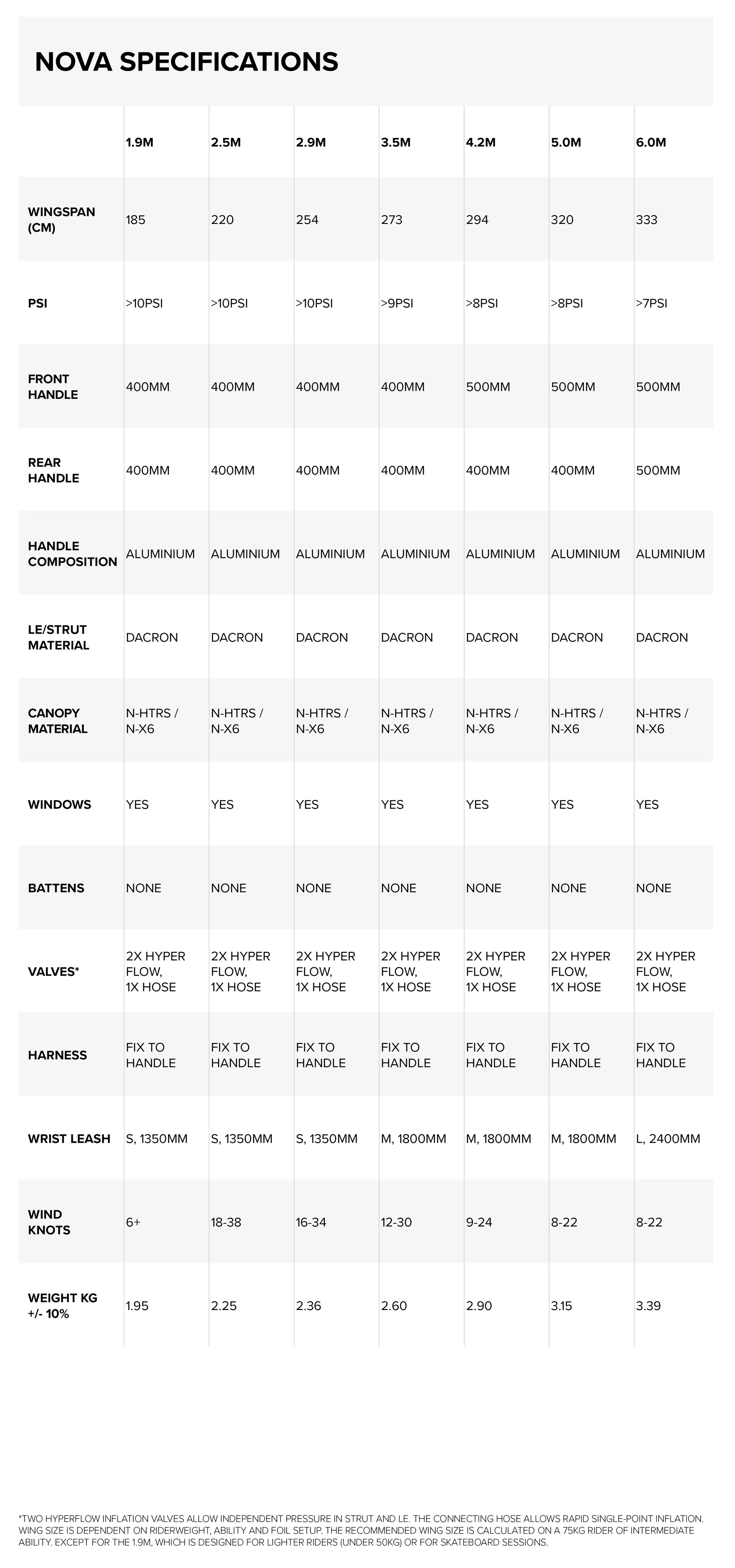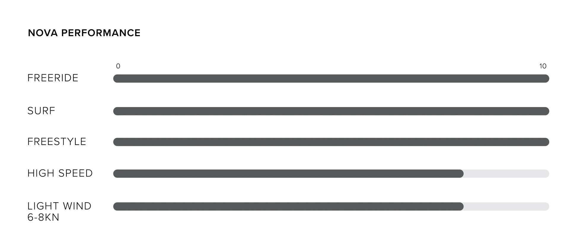 Nova, az igazi "mindenes". Legyen szó freeride-ról egy bányatavon, hullámlovaglásról Mauritiuson, vagy freestyle-ról az Északi-tengeren, a 2024-es Nova társad lesz minden szeles napon! Egy kiegyensúlyozott, könnyű ernyőt hoztak létre az idei évben, mely mind a gyenge szellőben, mind az erős viharban egyaránt könnyen kezelhető marad.